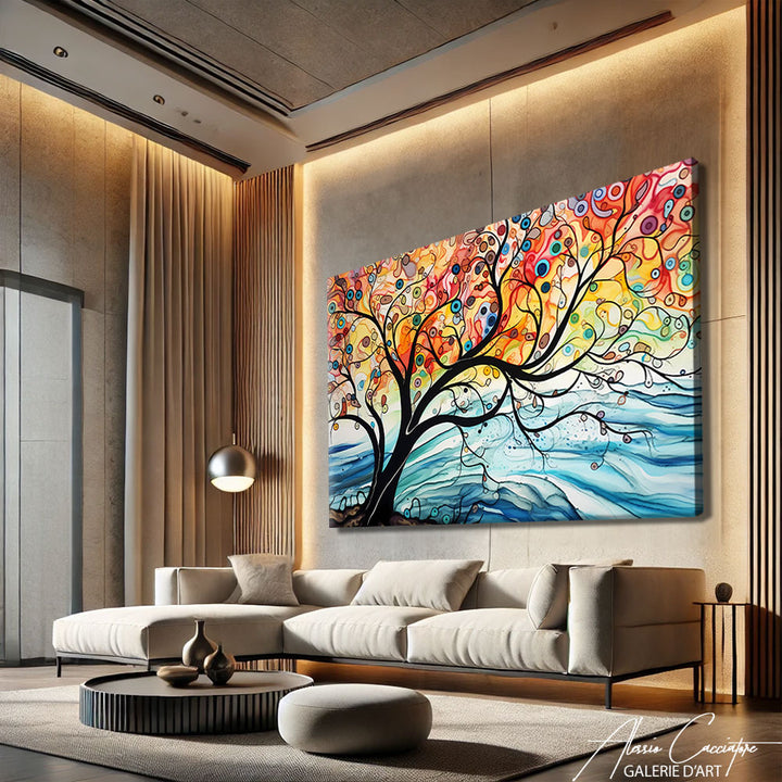 Ce tableau mural présente l'Arbre de vie dans une composition artistique qui capte l'essence de la croissance et de la connexion. Un choix idéal pour embellir les murs et apporter une touche de nature et de profondeur à l'environnement.