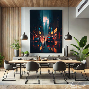 Une ville dont la splendeur et le dynamisme sont magnifiquement retranscrits par l'artiste. Ce tableau New York de nuit apportera une touche de sophistication et de modernité à votre intérieur.