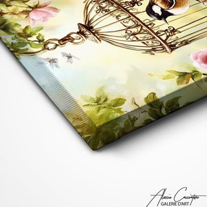 Notre tableau représente un oiseau en cage dans une scène empreinte de douceur et de symbolisme. Entre réalisme et touche artistique, il évoque la liberté et le rêve, ajoutant une profondeur émotionnelle et élégante à votre décoration. Chaque détail minutieusement travaillé apporte une dimension poétique, idéale pour un intérieur raffiné et inspirant.
