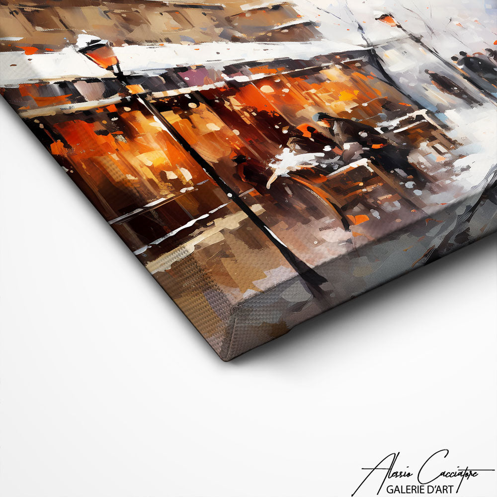Ce tableau saisit Paris dans son manteau d'hiver, offrant une perspective rare et magique de la ville sous la neige. Une œuvre poétique et apaisante, parfaite pour créer une atmosphère de calme et de beauté.