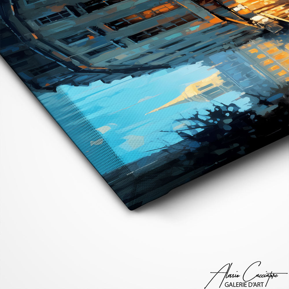 Ce tableau Paris sous la pluie, capture magnifiquement l'atmosphère romantique et mélancolique de la ville. Les reflets mouillés et l'ambiance brumeuse feront de cette œuvre un sujet de conversation fascinant dans votre maison.