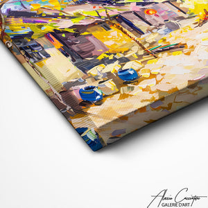 Nos toiles sont imprimées grâce à une encre spéciale resistante aux UV. Cette encre protège les couleurs au fil des années pour conserver le contraste de la peinture.