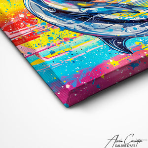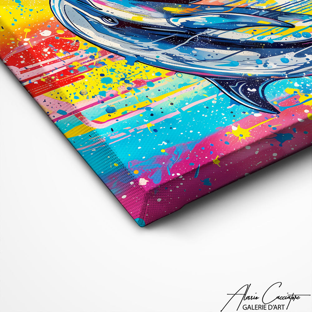 Pour tous les adeptes de street art, l'artiste vous propose son tableau de dauphin coloré. Une pièce idéale pour les espaces souhaitant évoquer la beauté de la nature marine.