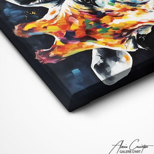 Les nuances tantôt douces, tantôt audacieuses, entrelacent la familiarité et l'étrange, offrant ainsi une expérience visuelle qui invite à la réflexion. Ce tableau girafe est plus qu'une simple représentationn, c'est une invitation à percevoir le monde d'une nouvelle manière