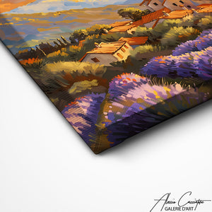 Notre tableau représente un paysage ensoleillé de la Provence, avec des champs de lavande et des collines baignées de lumière. Les textures riches et les couleurs chaudes apportent une ambiance méditerranéenne idéale pour illuminer votre intérieur.