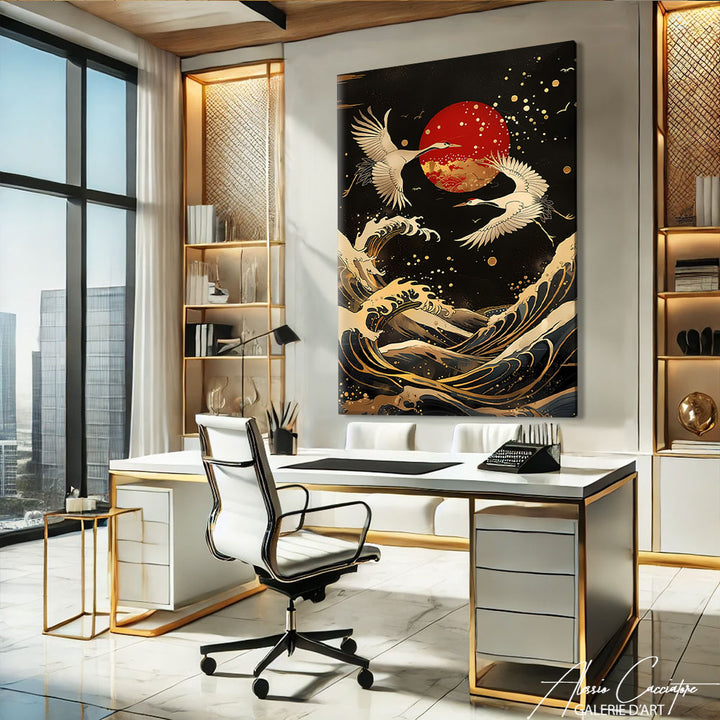 Notre tableau paysage japonais illustre la beauté des vagues et oiseaux nippons avec un rendu artistique raffiné. Il apporte une touche d’évasion et de sérénité à votre intérieur.