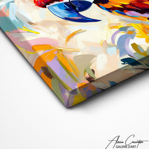 Nos toiles sont imprimées grâce à une encre spéciale resistante aux UV. Cette encre protège les couleurs au fil des années pour conserver le contraste de la peinture.