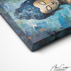 Cette pièce est un choix sublime pour les amateurs d'art désireux de capturer la sérénité et la beauté intemporelle de Bouddha à travers ce tableau dans leur environnement quotidien.
