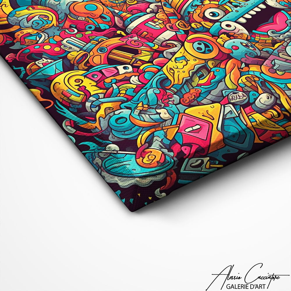 Une symphonie visuelle de couleurs et de formes audacieuses, ce tableau Street Art allie l'audace de l'art de la rue avec la sophistication de l'artiste Alessio Cacciatore