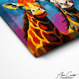Une explosion de couleurs et de créativité, ce tableau pop art met en scène le règne animal avec des girafes dans un style coloré audacieux et fascinant.