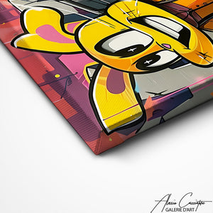 Notre tableau street art cartoon est un clin d'œil ludique aux icônes de notre enfance, revisitées avec une touche de graffitis urbains. Cet assemblage unique est parfait pour ajouter une dose de nostalgie joyeuse et de couleur à votre quotidien.