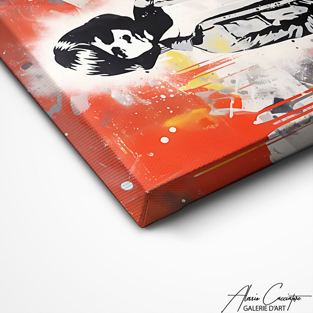 Par l'intermédiaire de formes précises et de contrastes saisissants, ce tableau street art pochoir évoque un message fort, tout en conservant une esthétique captivante et provocatrice.