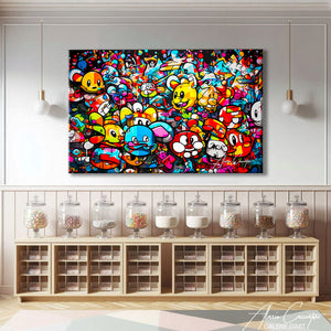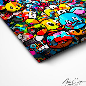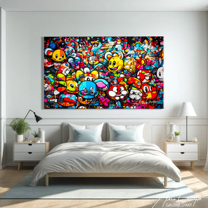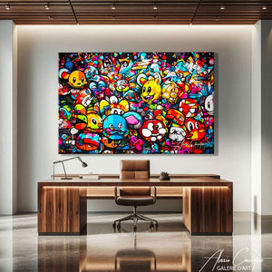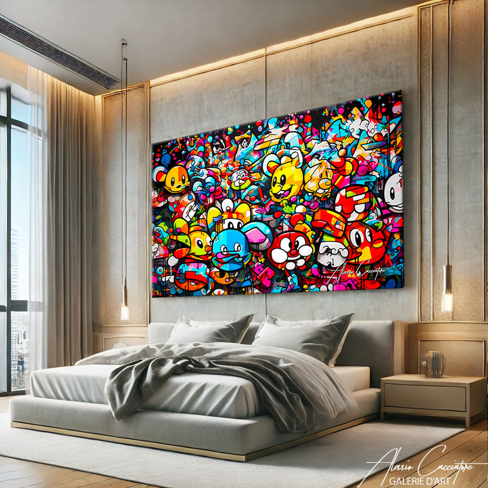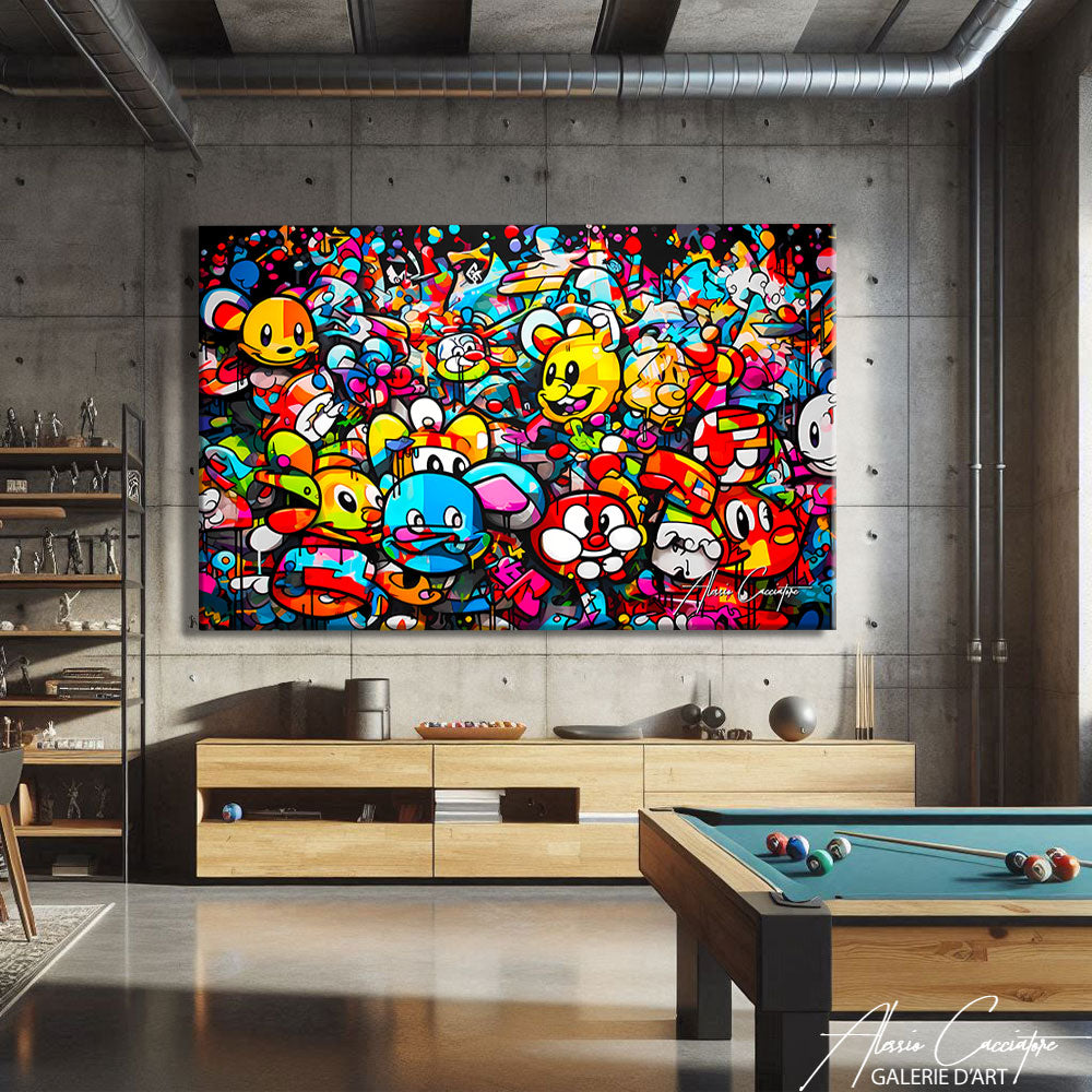 Une déclaration artistique audacieuse, ce tableau capture l'essence du street art. Ses dimensions imposantes, couplées à une utilisation audacieuse des couleurs et des formes, en font une pièce maîtresse incontournable pour tout espace.