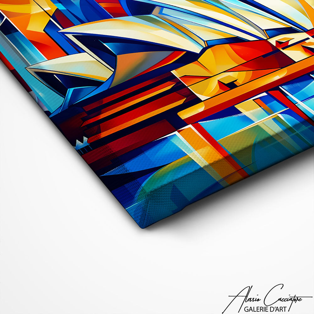 Notre tableau Sydney revisite l’iconique Opéra dans un style cubique audacieux, jouant avec les formes géométriques et les contrastes modernes. Sa composition déstructurée apporte une touche artistique unique, sublimant l’architecture emblématique de la ville sous un nouvel angle. Idéal pour une décoration contemporaine, ce tableau transforme votre espace avec une vision originale et dynamique de Sydney.