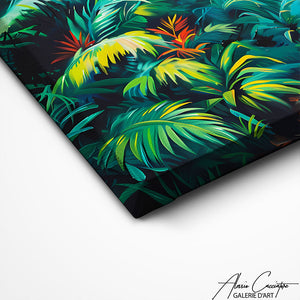 Notre tableau triptyque jungle plonge votre intérieur dans une ambiance tropicale avec des feuilles luxuriantes et des teintes naturelles. Idéal pour une décoration vivante et rafraîchissante, il apporte une touche d’évasion à votre pièce.
