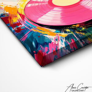 Notre tableau triptyque rose fuchsia met en scène un disque vinyle rose fuchsia au cœur d’un univers graphique dynamique. Les couleurs intenses et les formes circulaires attirent immédiatement le regard. La composition en trois parties accentue le mouvement et l’énergie visuelle. Parfait pour une décoration moderne, créative et résolument audacieuse.