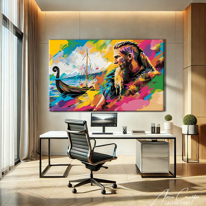 Notre tableau Viking Ragnar met en lumière l’intensité et la force légendaire du célèbre guerrier nordique. Avec des détails saisissants et une composition artistique puissante, il capture l’esprit des Vikings et leur héritage épique. Idéal pour les amateurs d’histoire et de mythologie, il apporte une touche audacieuse et héroïque à votre décoration.
