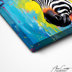 Notre tableau zèbre coloré apporte une note exotique et moderne à votre décoration intérieure grâce à ses rayures revisitées en teintes éclatantes