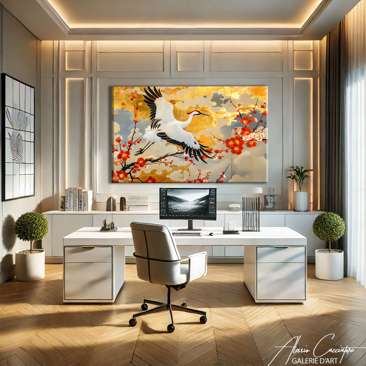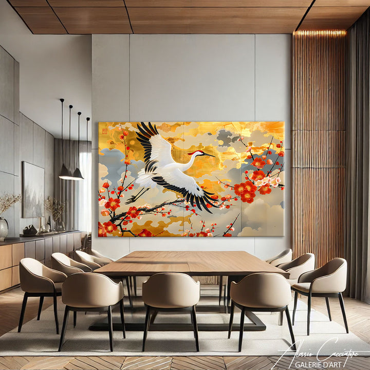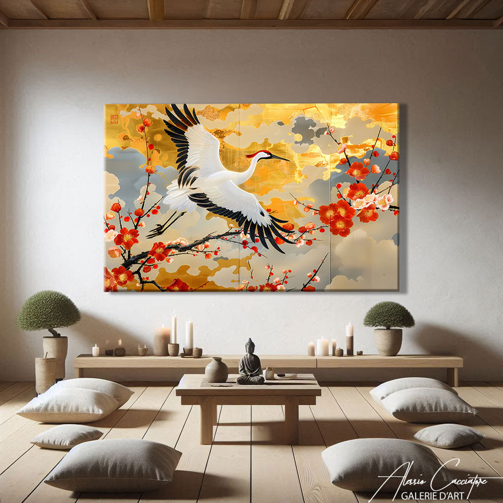 Notre tableau zen japonais associe nature et spiritualité pour créer une ambiance apaisante avec ses cerisiers en fleurs qui se mêlent dans une composition harmonieuse et invite à la méditation.