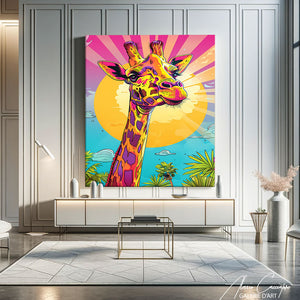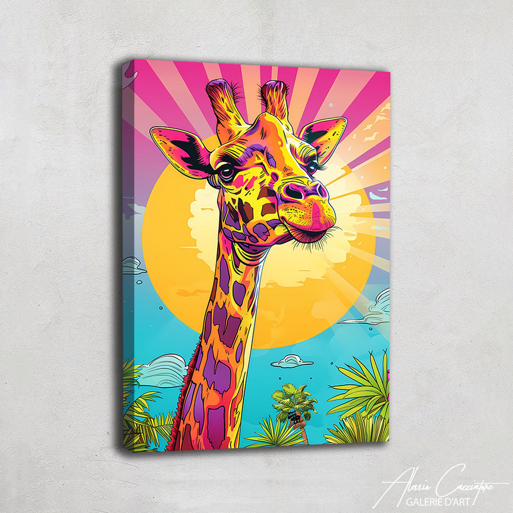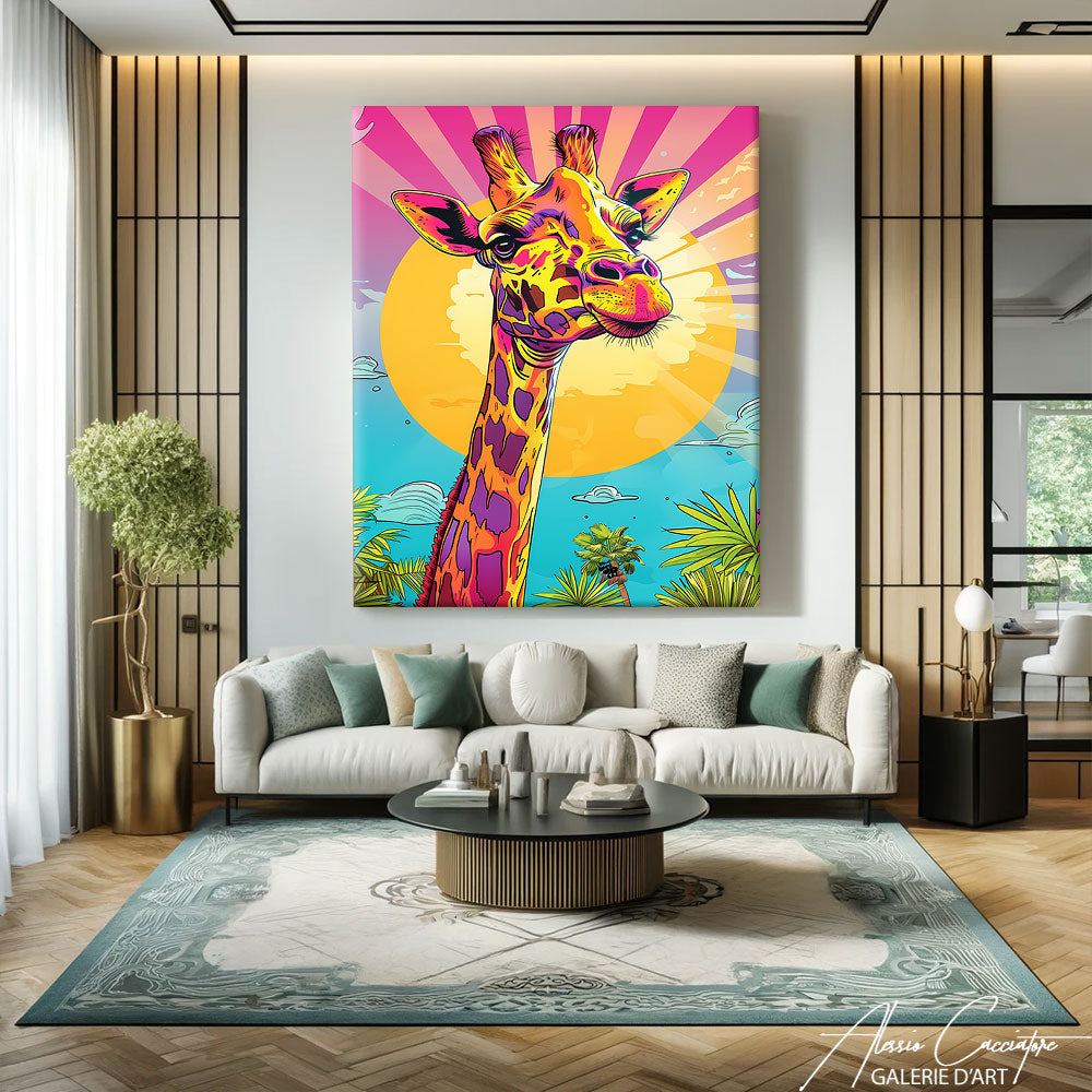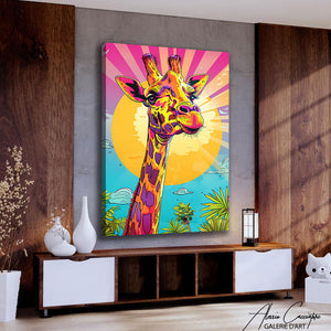 Ajoutez une note adorable à votre décoration avec ce tableau girafe. Les traits doux et les expressions attendrissantes de la girafe en font une pièce idéale pour un espace accueillant.
