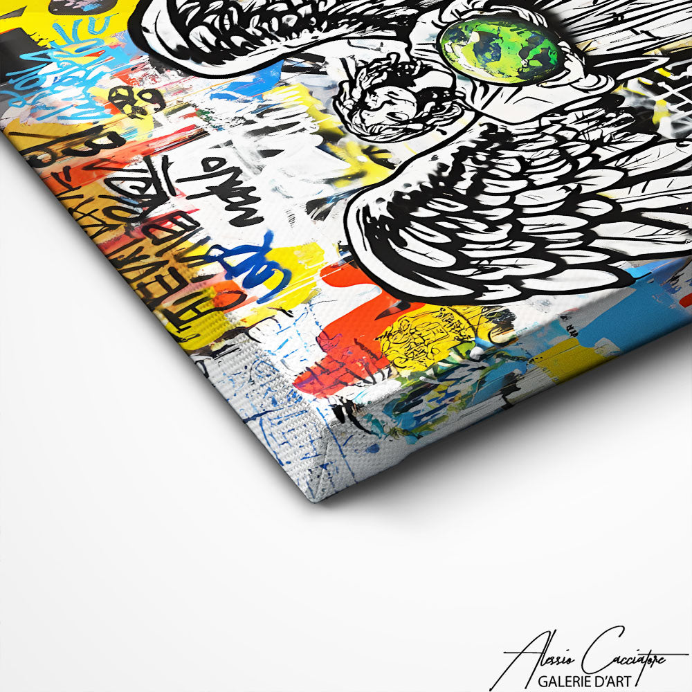Notre tableau graffiti pop art représente un ange revisité dans un style urbain percutant, mêlant l’esthétique du street art et l’énergie vibrante du pop art. Entre couleurs éclatantes, contrastes marqués et effets de peinture dynamique, cette œuvre réinterprète la figure angélique avec une touche moderne et rebelle. Idéal pour un salon, une chambre ou un espace créatif, il apporte une ambiance unique, mêlant spiritualité et expression artistique contemporaine.